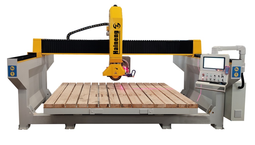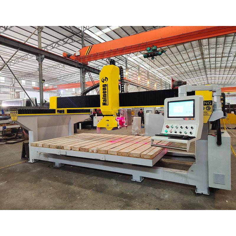 Mesin pemotong gergaji jembatan CNC 4 sumbu Haineng adalah mesin pengolahan batu yang mengintegrasikan pemotongan presisi tinggi dan pengoperasian cerdas. mesin pemotong batu jembatan Dilengkapi dengan sistem penghubung 4 sumbu dengan kemampuan penggilingan tambahan, menawarkan pemasangan yang mudah dan pengoperasian yang sederhana. Terutama digunakan untuk memproses material batu seperti marmer, batu kuarsa, lempengan batu, dan granit dalam proyek dekoratif, gergaji jembatan batu adalah peralatan pemrosesan mendalam yang paling cocok untuk pabrik pemotongan bentuk khusus.