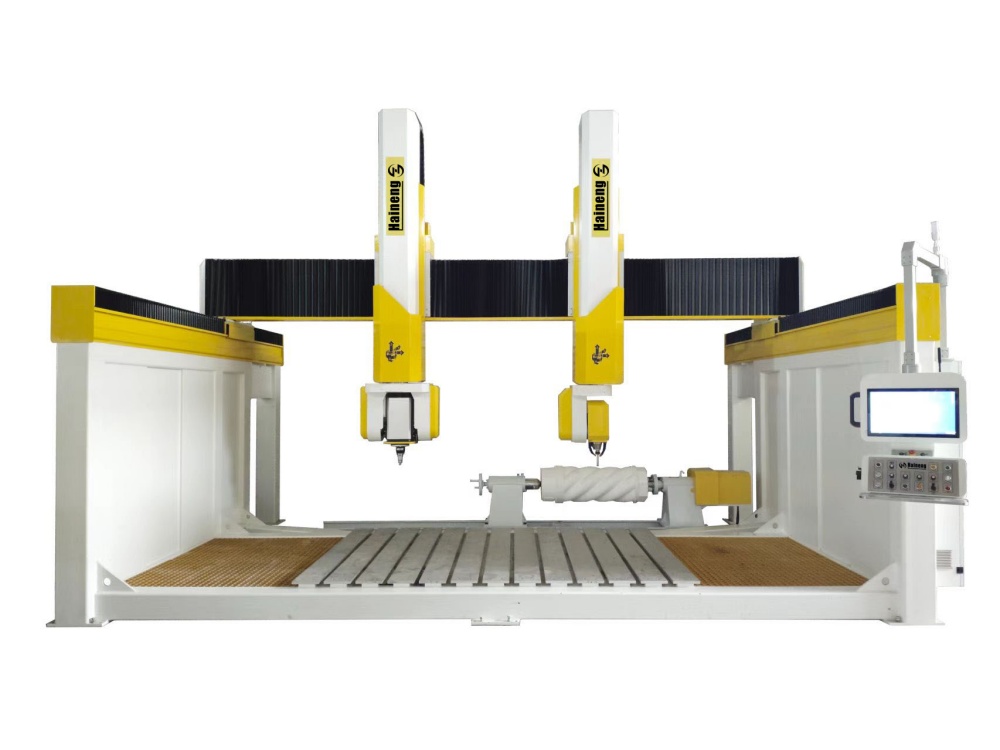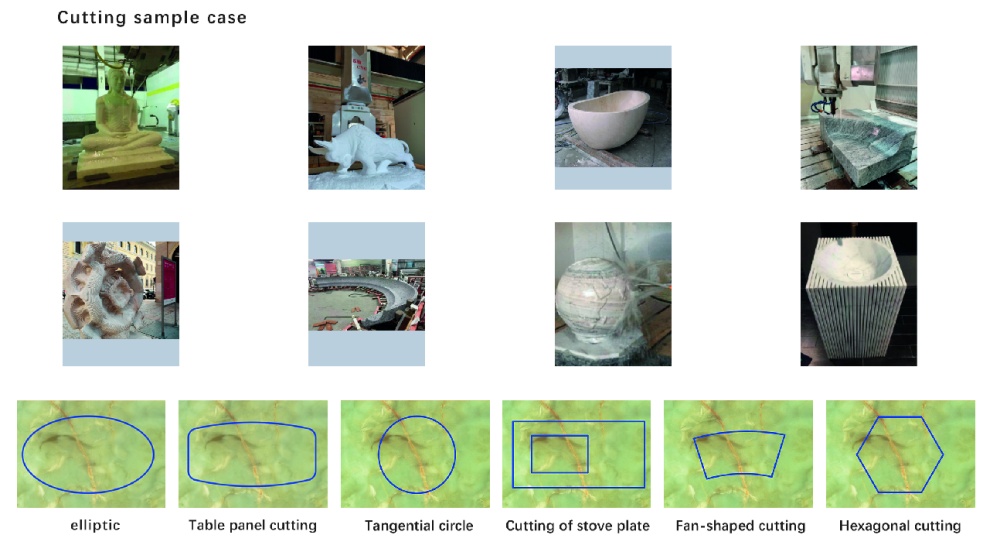 Pusat permesinan CNC 6 sumbu kompatibel dengan fungsi pemotongan pelat konvensional, pemrosesan profil, lanskap air, pemrosesan bentuk taman, kepala kolom Romawi vila kelas atas, kolom Fried Dough Twists, dan berbagai jenis pemrosesan batu dengan bentuk kompleks.