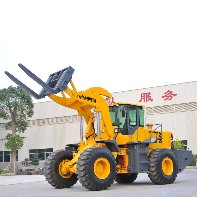 Forklift loader tambang ini dirancang untuk operasi efisiensi tinggi, dilengkapi struktur penghubung enam lengan ayun ganda dengan kapasitas beban 16-50 ton. Forklift wheel loader ini dilengkapi mesin turbocharged enam silinder empat langkah yang menggabungkan teknologi common rail bertekanan tinggi, menghasilkan daya yang lebih besar sekaligus mengurangi konsumsi energi secara signifikan. Sasis monokok berpenampang kotak dan lengan angkat berpenampang persegi panjang, yang terbuat dari baja berkekuatan tinggi, memadukan sifat ringan dengan kapasitas menahan beban yang tinggi. Lengan angkat teleskopik menawarkan ekstensi yang fleksibel dan radius kerja yang lebih luas.