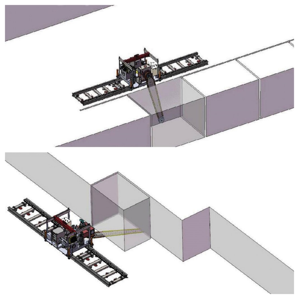 4. Gergaji yang terpasang pada rel diposisikan langsung di permukaan tambang. Sistem rel tiga bagian standar memungkinkan penggunaan jalur secara bergantian selama operasi. Mesin tambang batu ini dapat melakukan pemotongan vertikal dan horizontal.