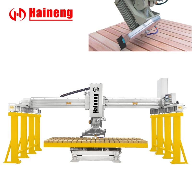 Mata gergaji secara otomatis dimiringkan 45 derajat, dan meja secara otomatis diputar 360 derajat. Dapat dilompati dan diposisikan dengan posisi sudut apa pun dan rem. Gergaji Jembatan Granit Marmer dapat memotong bentuk persegi panjang, segi delapan, lingkaran, bulat, serta sudut kecil dan sedang. Dapat memilih fungsi pembuatan profil.